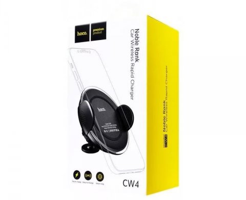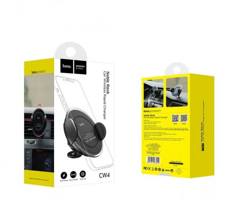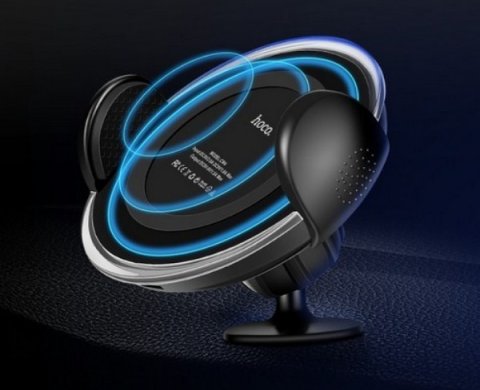 Hoco CW4 цвет: черный - автомобильное беспроводное Qi зарядное устройство одновременно является держателем и зарядкой для вашего телефона! Предназначено для гаджетов, у которых есть функция беспроводной зарядки (чип Qi). Устройство можно установить на решетку воздуховода или приборную панель – все для удобства пользователя.