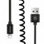 Кабель растягивается и сжимается благодаря витой структуре, похожей на пружину. Прочная прорезиненная оплётка не даёт спутываться и препятствует переламыванию.