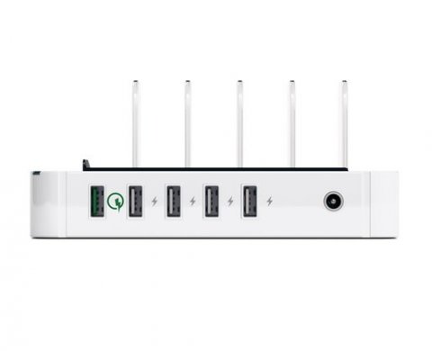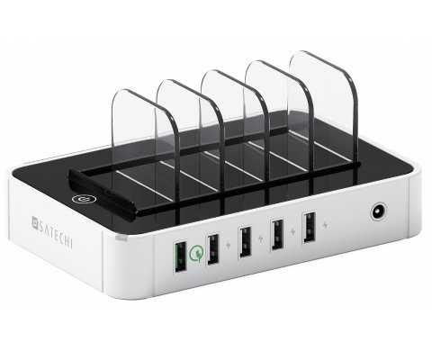 Satechi 5-Port USB Charging Station Qualcomm (B0170L326A) - это док-станция, предназначенная для зарядки любых устройств, имеющих возможность подключения к USB-портам. С помощью этой удобной станции, каждый порт которой рассчитан на мощность 5 Вольт/2.4 Ампера, можно одновременно заряжать до пяти гаджетов (телефоны, планшеты, электронные книги, фотоаппараты и многое другое). К тому же один порт имеет "быстрый" способ зарядки Qualcomm, который ускоряет процесс на 75%.
