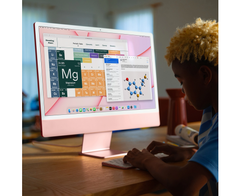 Такой невероятный дизайн стал возможным благодаря чипу M1 — первой системе на чипе, созданной для Mac. Тонкий и лёгкий, этот iMac поместится где угодно. Чип M1 объединяет в себе центральный и графический процессоры, память и ряд других компонентов. Поэтому нам удалось поместить такую мощь в такой тонкий корпус. На превосходном дисплее Retina 24 дюйма с разрешением 4,5K всё видно чётко, и вы сможете рассмотреть каждую деталь.2 Широкий цветовой охват P3 обеспечивает реалистичную передачу изображения с помощью более миллиарда цветов. Яркость дисплея составляет 500 кд/м², поэтому картинка получается очень насыщенной. При этом специальное антибликовое покрытие уменьшает нагрузку на глаза, а технология True Tone автоматически настраивает цветовую температуру в соответствии с окружающим освещением, делая изображение ещё более естественным. Фотографии, презентации, фильмы и сериалы — на iMac всё выглядит превосходно. Улыбнитесь, вас снимает камера FaceTime HD 1080p. Это лучшая камера для Mac. Она обеспечивает в два раза более высокое разрешение во время видеозвонков.3 Увеличенная матрица улавливает больше света. Передовой процессор обработки сигнала изображения в чипе M1 существенно повышает качество изображения. Теперь, обсуждая рабочие моменты или общаясь с друзьями по видеосвязи, вы можете быть уверены, что выглядите потрясающе.