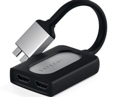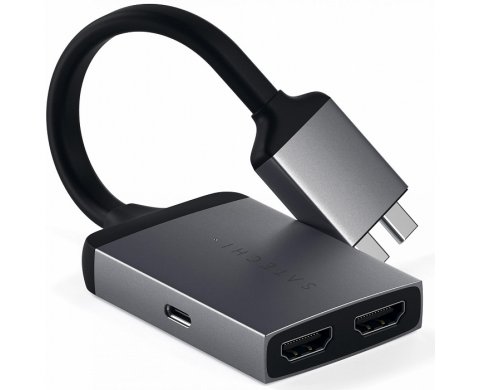 ОПИСАНИЕ Satechi Type-C Dual HDMI Adapter представляет собой компактный переходник с двумя разъемами HDMI, который позволит выводить изображение на два внешних монитора. Для подключения к источнику видео используется два выхода USB-C.