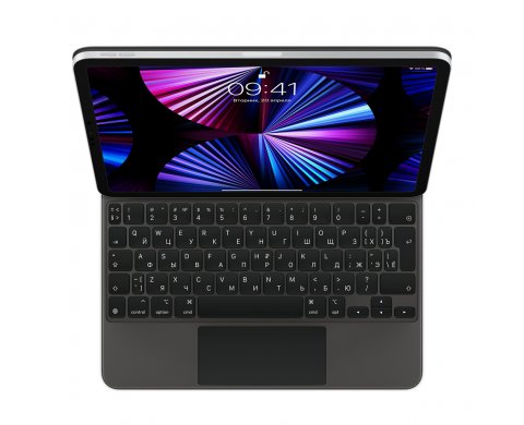 Клавиатура Magic Keyboard станет идеальным дополнением к iPad Pro или iPad Air. Печатать с её помощью невероятно удобно. Встроенный трекпад открывает новые возможности для работы с iPadOS. Порт USB‑C позволяет заряжать iPad. А Magic Keyboard защищает устройство с обеих сторон. Эта клавиатура с особой консольной конструкцией примагничивается к iPad Pro или iPad Air. При этом можно плавно менять угол наклона, чтобы подобрать идеальное положение.