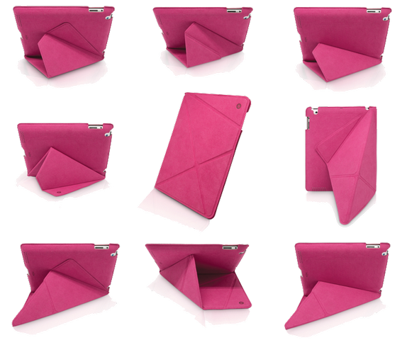 В отличие от Origami, эта модель выполнена из прочного полиуретана и имеет тонко текстурированную поверхность. В такой обложки iPad mini действительно напоминают книгу, но конечно не простую, а с секретом. Так, что бы установить планшет на горизонтальной поверхности, нужно откинуть фронтальную часть и поставить планшет, все просто. Очевидно, что и в этом случае угол наклона планшета можно менять. С такой подставкой iPad mini уверенно держится на поверхности, не скользит и не шатается. Отдельно стоит отметить, что все чехлы кейса имеют точно выверенные прорези для разъемов и органов управления девайса, а так же перфорацию для динамиков, значит, громкость планшета не пострадает, как и ваш имидж.