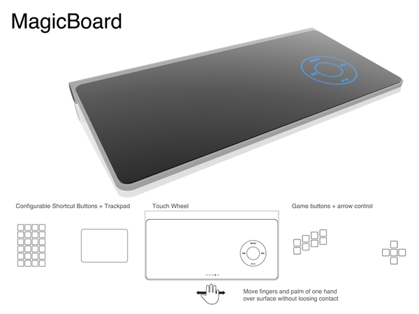 пр. Победителей, 125 Промышленный дизайнер и разработчик Eliel Cabrera, из небольшого испанского городка Эльче, представил миру своё видение клавиатуры. Гаджет получил название MagicBoard и представляет собой настраиваемую сенсорную клавиатуру, которая соединяется с любым внешним устройством посредством сигнала Wi-Fi. Главная особенность, которая делает эту клавиатуру уникальной, это обширные возможности настройки. Вы легко можете поменять размер клавиатуры или отдельных клавиш, настроить порядок расположения элементов и многое другое. Планируется, что гаджет будет совместим с множеством устройств, но прежде всего с планшетами и смартфонами Apple. Огорчает лишь тот факт, что это уникальная клавиатура пока что является концептом и когда она поступит в продажу неизвестно.