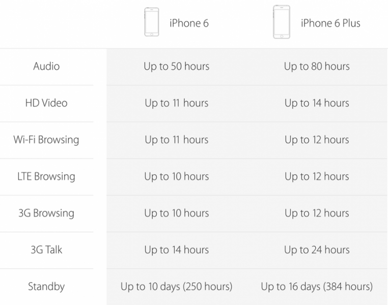 iPhone 6 Plus имеет более емкий аккумулятор, что подразумевает улучшенные характеристики в плане автономной работы: