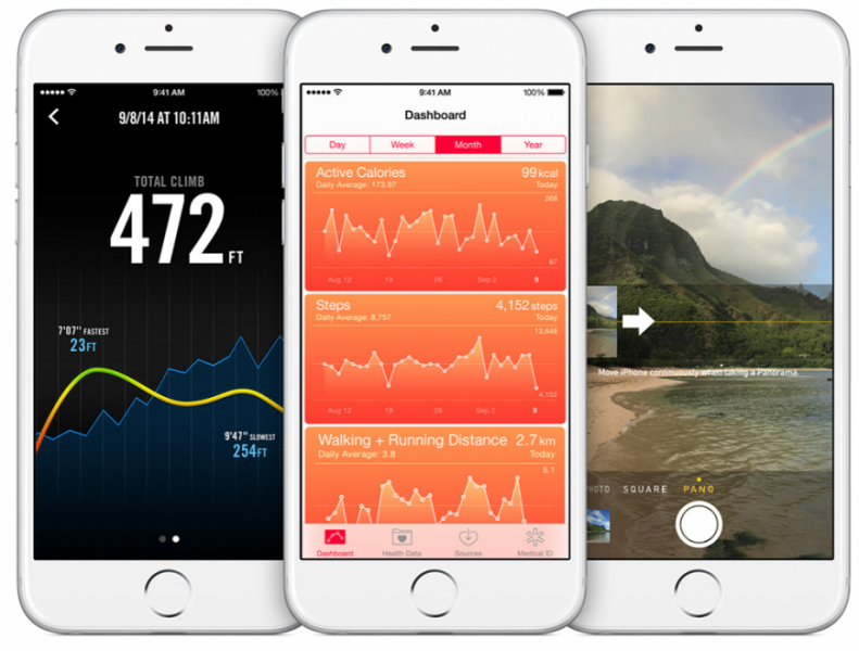 В комплекте с процессором А8 работает сопроцессор М8, который отвечает за обработку данных от различных встроенных сенсоров. Вам становятся доступны самые разные приложения. Ваш телефон будет распознавать разницу между подъемами и спусками, бегом, ходьбой и ездой на велосипеде.