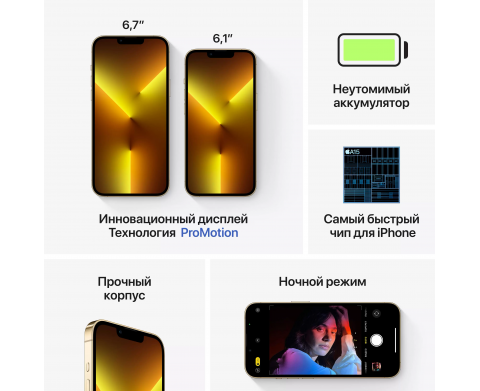 Характеристики Apple iPhone 13 Pro Max, 512 ГБ, золотой (MLMV3)