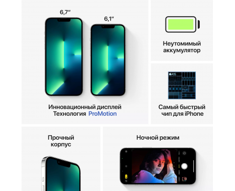 Характеристики Apple iPhone 13 Pro, 256 ГБ, серебристый (MLW63)