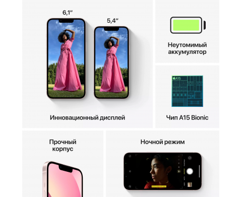 Характеристики Apple iPhone 13, 256 ГБ, розовый (MLP53)