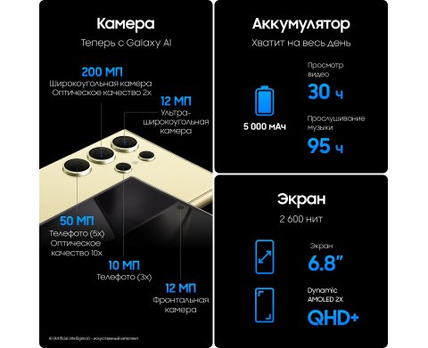 Технические характеристики Samsung Galaxy S24 Ultra 256 ГБ желтый титан