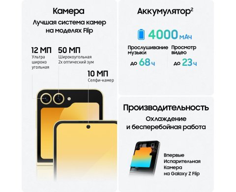 Характеристики Samsung Galaxy Z Flip6 256 ГБ Желтый