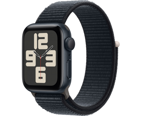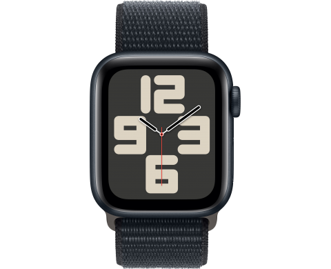 Apple Watch SE 2023, 40 мм, корпус из алюминия цвета «тёмная ночь», спортивный текстильный ремешок цвета «тёмная ночь» (MRE03)