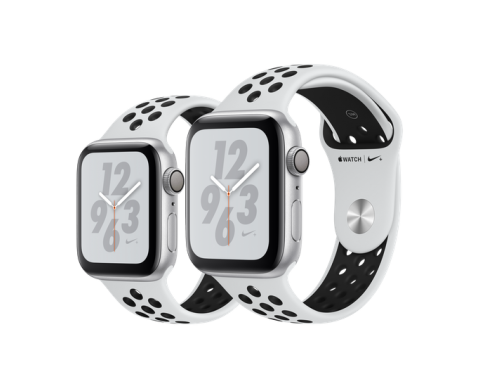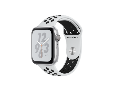 Apple Watch Nike+ Series 4 (MU6K2RU/A), 44 мм, корпус из алюминия серебристого цвета, спортивный ремешок Nike цвета «чистая платина/чёрный»