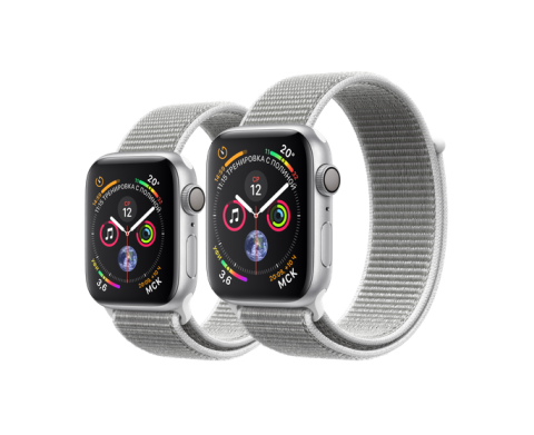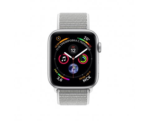 Apple Watch Series 4 (MU652RU/A), 40 мм, корпус из алюминия серебристого цвета, спортивный браслет цвета «белая ракушка»