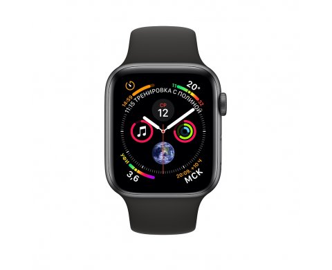 Apple Watch Series 4 (MU662RU/A), 40 мм, корпус из алюминия цвета «серый космос», спортивный ремешок черного цвета
