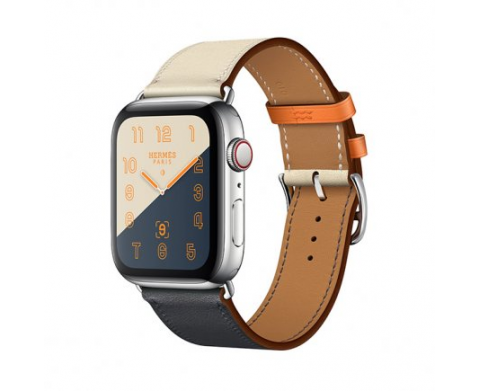 Apple Watch Series 4 GPS + Cellular, 44mm, корпус из стали, ремешок Hermès Single Tour из кожи Swift цвета Indigo/Craie/Orange