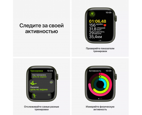 Спецификация Apple Watch Series 7, 41 мм, корпус из алюминия зеленого цвета, спортивный ремешок «зелёный клевер» (MKN03)